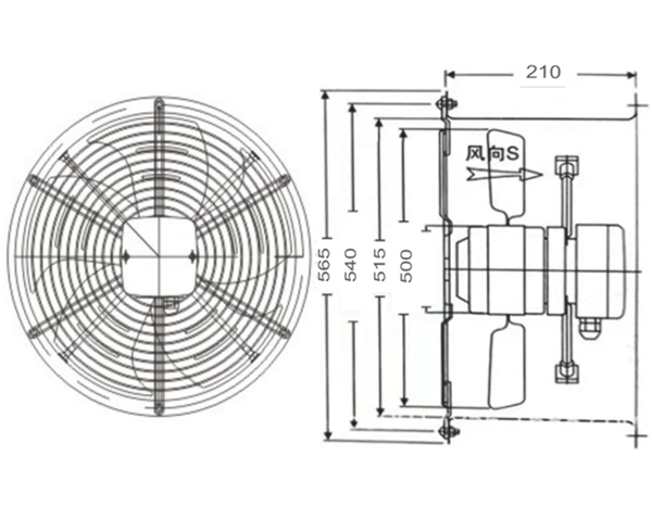 產品規格表| 型號 | 額定電壓 | 頻率 | 輸入功率 | 參考轉速 | 電容 | 最大風量 | 噪音 | | Model No | VAC | Hz | Watt | RPM | UF | m³/h | db(A) | | JGT500B2H-W | 220 | 50 | 450 | 1350 | 12 | 8060 | 71 | | JGT500B3H-W | 380 | 50 | 460 | 1360 | / | 8100 | 73 |